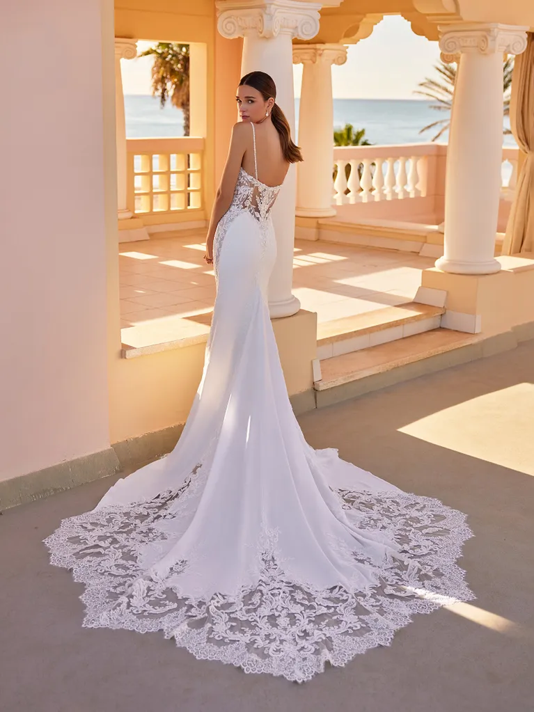 L'elegante abito da sposa Elliot dal taglio a sirena enfatizza magnificamente la figura con l'aiuto di sensuali dettagli in pizzo traslucido sui fianchi e sulla schiena scoperta. Le delicate spalline sottili e la lussuosa coulisse, riccamente decorata con pizzo, lo rendono la scelta perfetta per una sposa moderna e romantica.